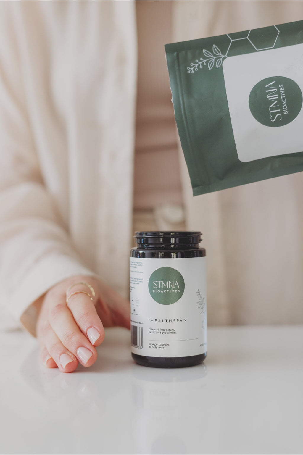 The bioactive compounds used in Healthspan are extracted from plants and concentrated to a therapeutic dose. We combine the extracts and add them to vegan capsules. There are no nasty fillers, toxins, preservatives, sweeteners or caking agents.